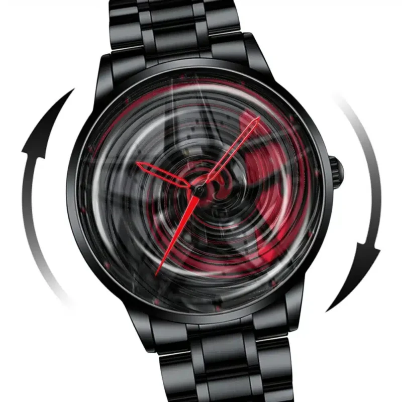 Întregul cadran se rotește în ceas, imitând mișcările unei roți! Turațiile cu aspect impresionant vă pot încânta prietenii sau pot atenua dorul de mașină printre fanii celor patru roți atunci când aceștia nu sunt la volan.