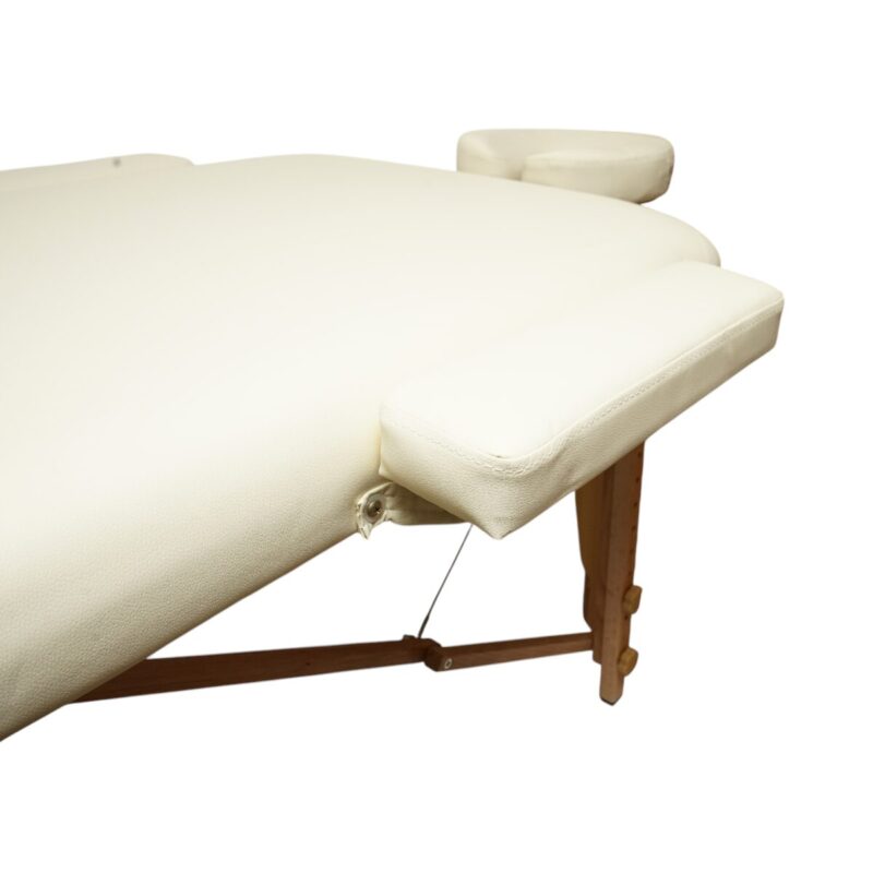 Masa de masaj pliabila, 3 zone, cadru lemn, spuma 5cm, inaltime 55-76cm, piele ecologica, dimensiuni 60x213cm, culoare Crem