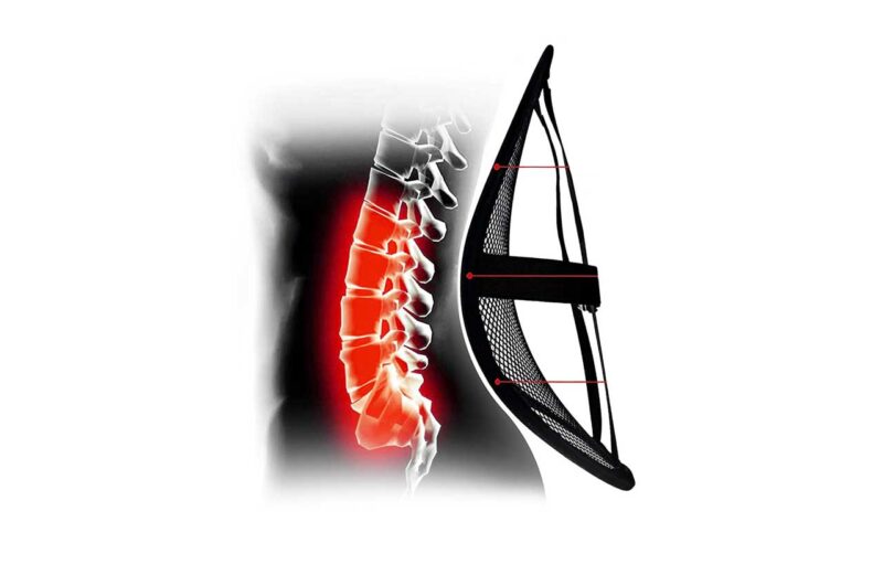 - Suportul lombar corectează poziționarea proastă a coloanei vertebrale atunci când stai pe scaune neergonomice. Oferă suport ortopedic adecvat pentru coloana lombară.