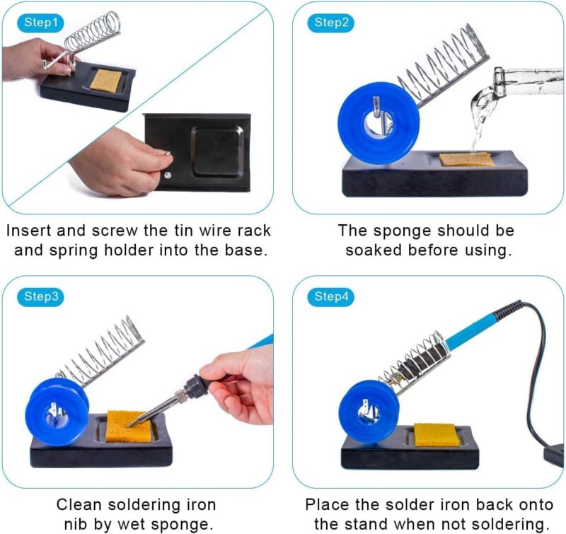 - Accesorii incluse: Suport pistol lipit, 5 varfuri interschimbabile, pompa de cositor (deslipire), penseta antistatica, burete curatare, cablu electric, sarma cositor, cleste dezizolat, husa organizatoare
