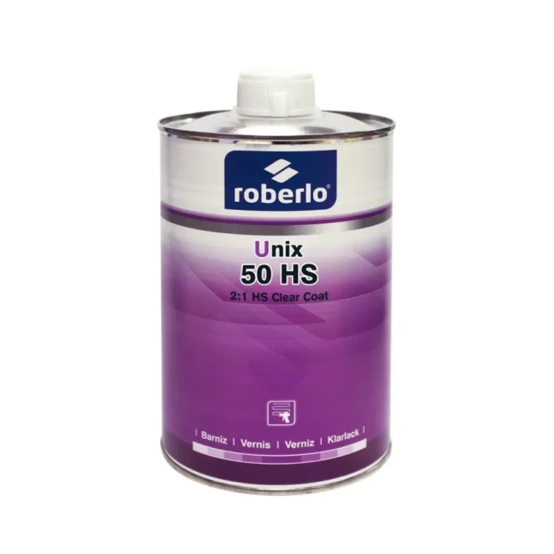 Roberlo UNIX 50 HS — noul produs de top pentru profesioniștii din domeniul reparațiilor auto. Este un lac acrilic bicomponent cu un conținut ridicat de substanță solidă, ideal pentru lucrări de calitate superioară și durabile. Potrivit pentru zone dificile și detalii cu cerințe ridicate privind calitatea finisajului. Lacul este livrat împreună cu întăritorul standard Roberlo G5005, destinat lacurilor cu conținut ridicat de substanță solidă. Înainte de aplicarea lacului UNIX 50 HS se recomandă o uscare intermediară a bazei de 15-20 minute. Umiditatea afectează componentele lacului UNIX 50, astfel echipamentul de aplicare trebuie să fie complet uscat. Închideți imediat recipientul cu întăritor după utilizare. La umiditate relativă peste 70% și/sau temperatură sub +10°C se recomandă uscarea la 60°C.